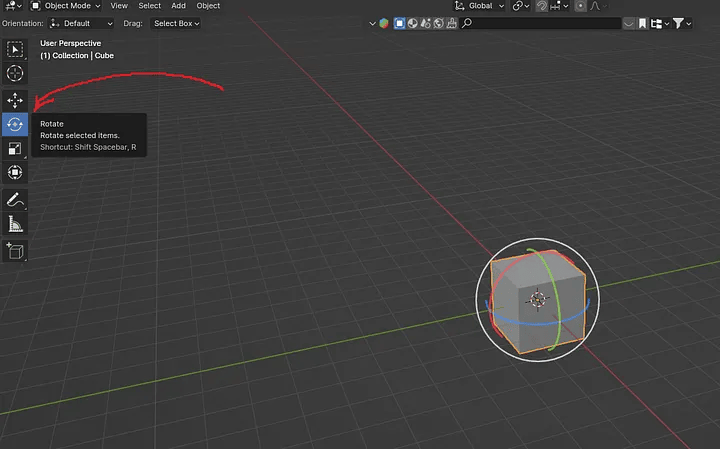 不用快捷键沿 Y 轴旋转立方体。作者截图。