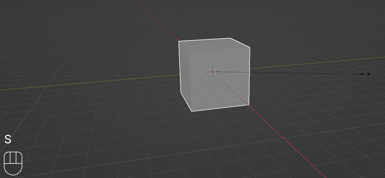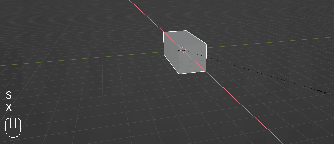 不用快捷键沿 X 轴缩放立方体。作者截图。