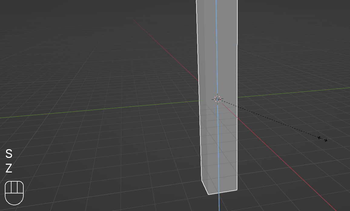 不用快捷键沿 Z 轴缩放立方体。作者截图。你已经学会了在物体模式下变换物体(移动、旋转和缩放)。