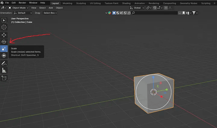 不用快捷键沿 Y 轴缩放立方体。作者截图。