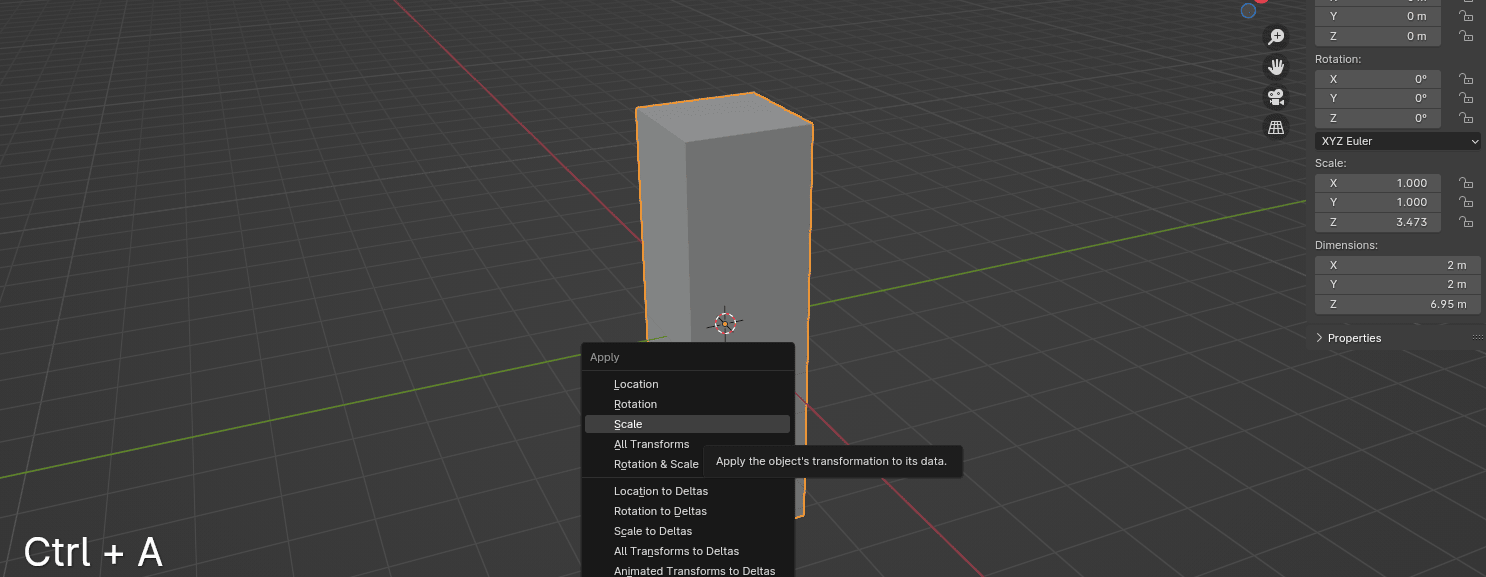 要应用 Z(或 X、Y 如果需要)的缩放,按"CTRL+A"然后应用缩放。