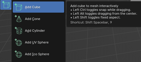 这个按钮很简单,我就不多解释了。你只需要选择想添加到场景中的物体(立方体、圆锥、圆柱、UV球体或 Ico球体),然后画到场景里就行了。