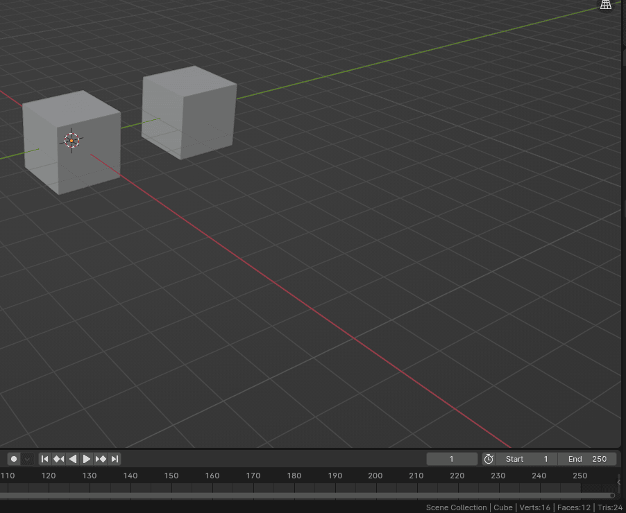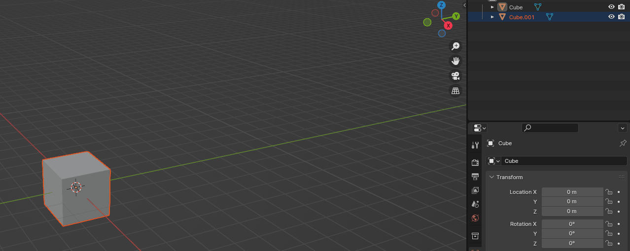 判断你已经复制了物体的一个方法是看大纲视图里现在有两个立方体:Cube 和 Cube.001。