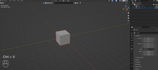 如果你再按 RMB 选择"Paste Objects",你的物体(这里是立方体)就会被复制,但它会和原来的立方体在同一位置。