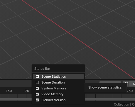 如果没显示,只要用 RMB 点击那条黑条(状态栏),选择 Scene Statistics。