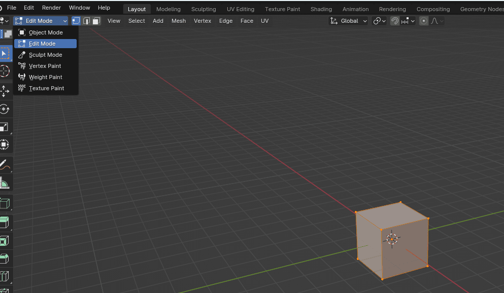 在物体模式下,立方体看起来不像这样,但现在我们可以编辑它了,它的样子也变了。