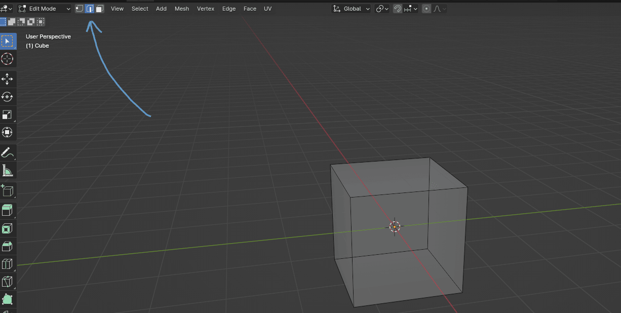 你已经熟悉移动、旋转和变换按钮了,我就不再解释。不同的是,在编辑模式下,你可以移动、旋转或缩放立方体的部分,而不是整个立方体。