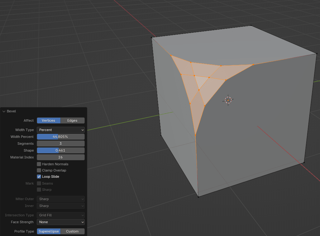 如果你切换到顶点,你会发现无法倒角它们,但别担心,我会教你一个技巧,让你也能倒角顶点,因为建模时知道这个会很有用。