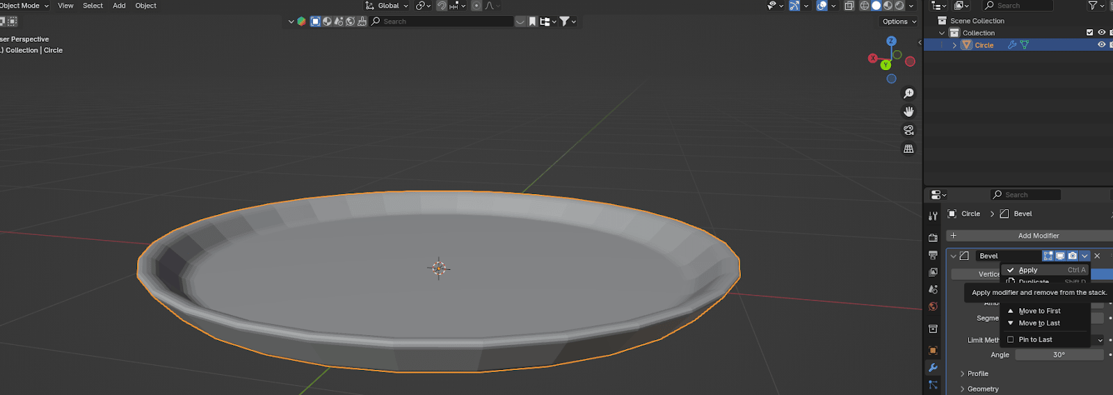 (除非你先复制盘子,不要应用这些步骤——我们不会用倒角修改器,这只是演示目的。)