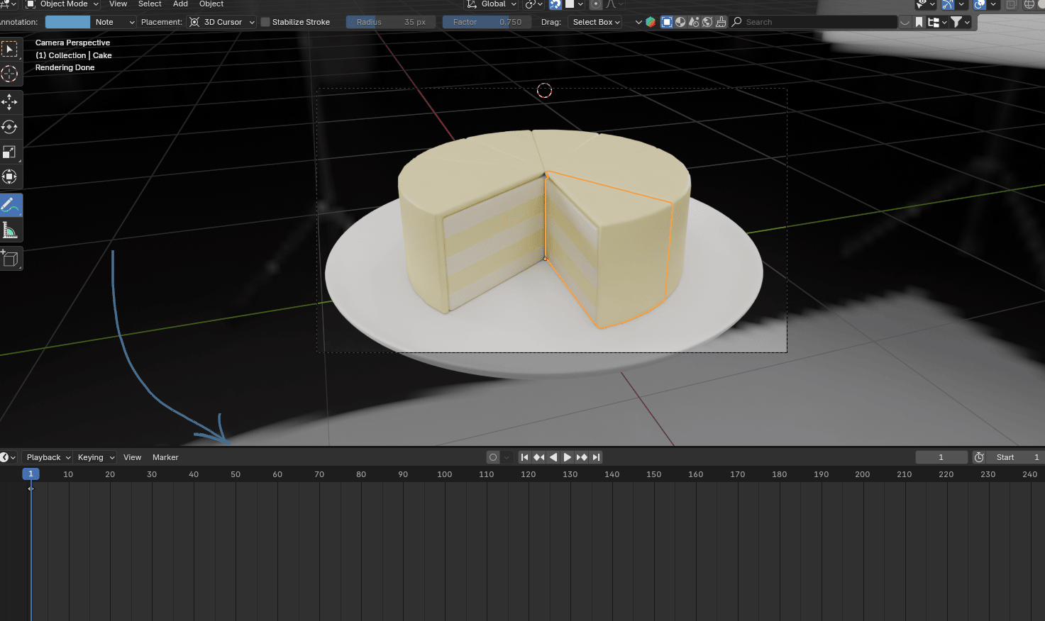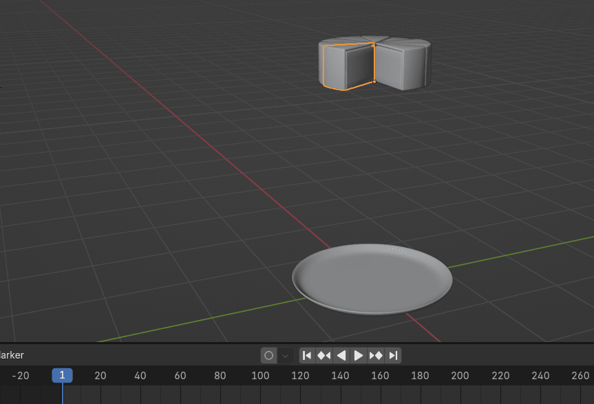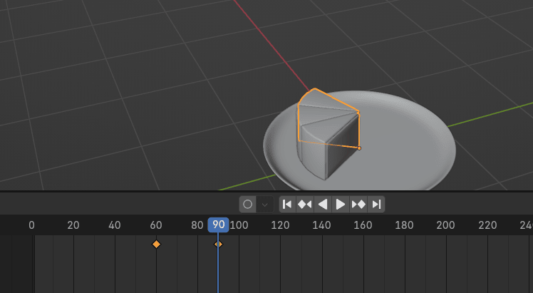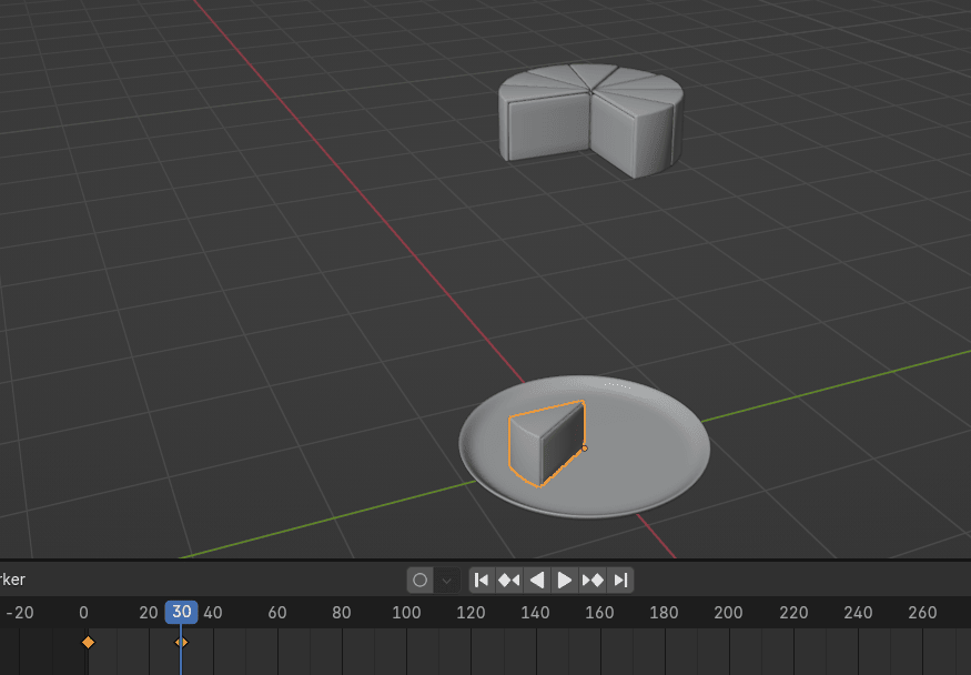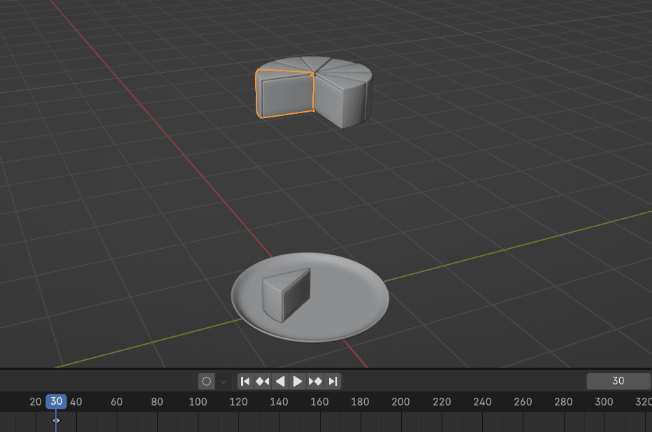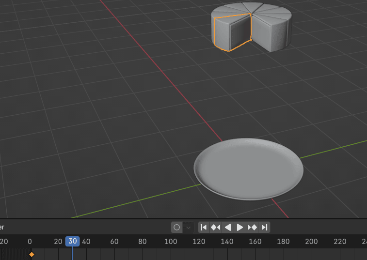 现在把蓝色播放头从第 30帧拖到你想让蛋糕块落到盘子的帧。
