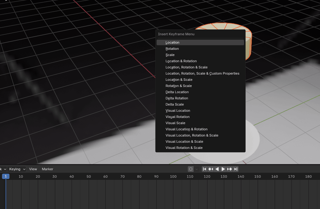 注意!在 Blender 4.2版本(我现在用的),如果你按"I",会同时插入位置、旋转和缩放。即使这样做也没错,但很多不必要的数据,因为我们既不旋转也不缩放动画。