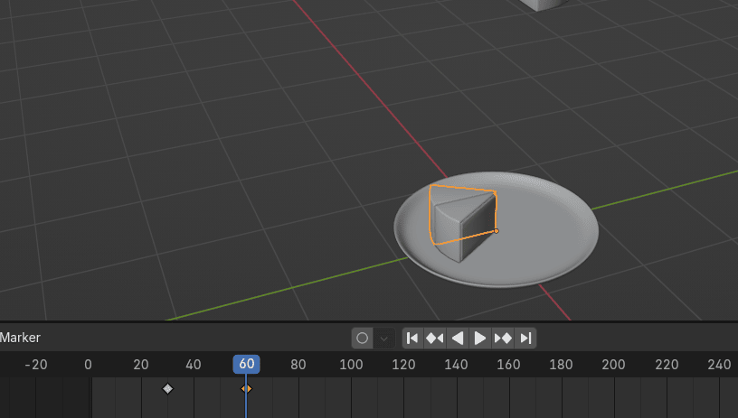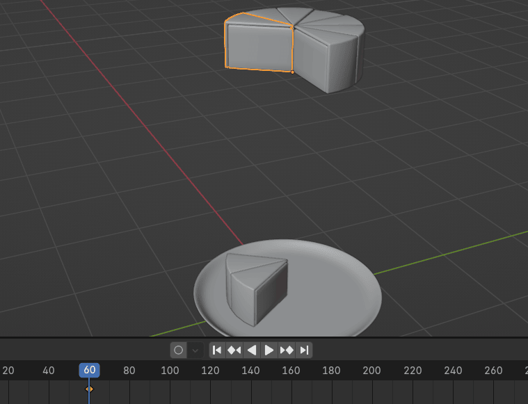 我想让第二块在第 60帧落到盘子。所以我把播放头移到那。