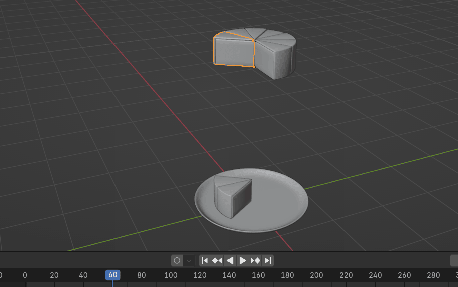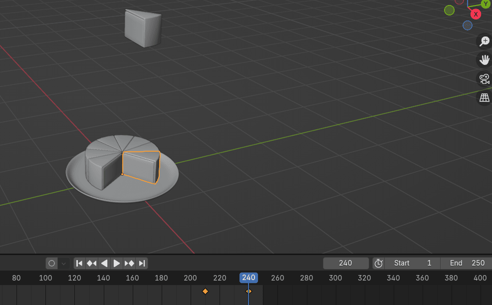 现在把蛋糕块吸附到盘子,把位置做成关键帧在选定的帧(我这里是第 240帧)。