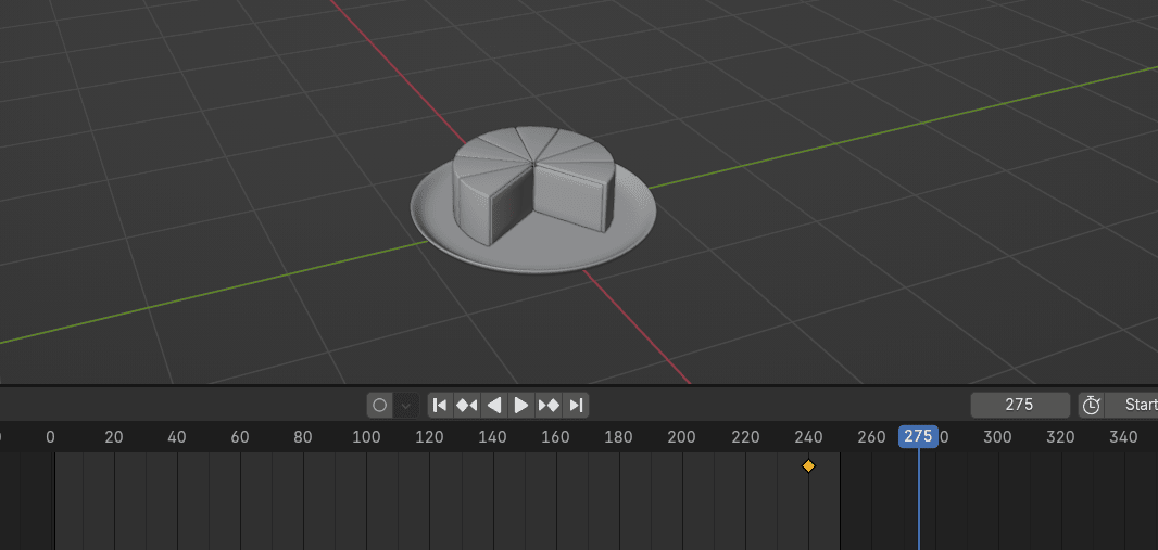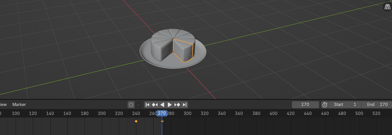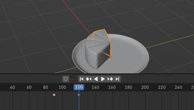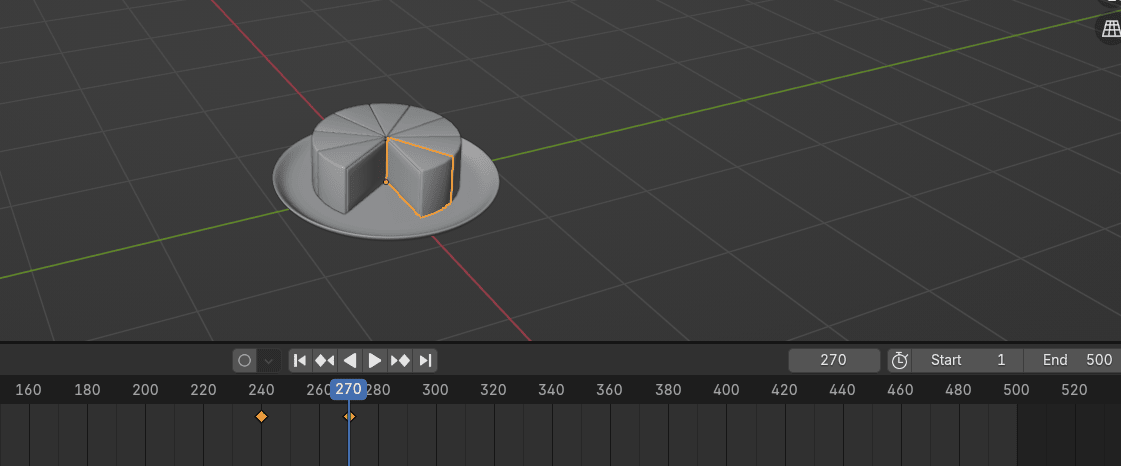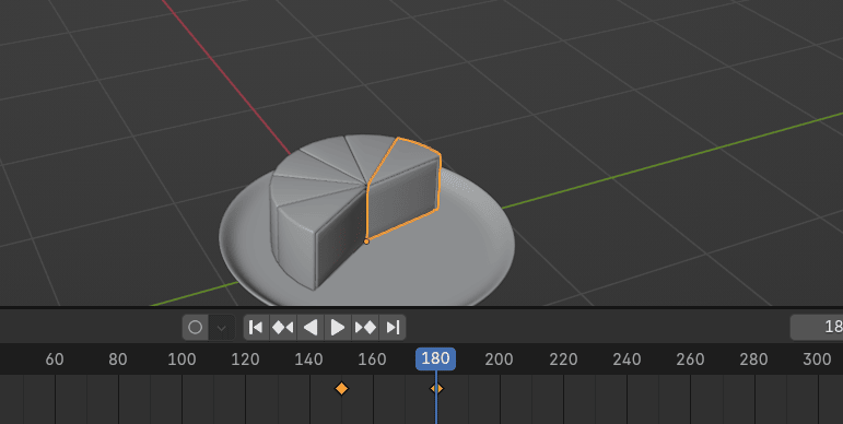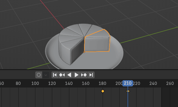当你选择任何蛋糕块,你会看到只有一个关键帧。因为插入的关键帧只显示当前选中的蛋糕块。