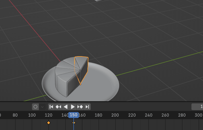 现在把蛋糕块吸附到盘子,把位置做成关键帧在选定的帧(我这里是第 150帧)。
