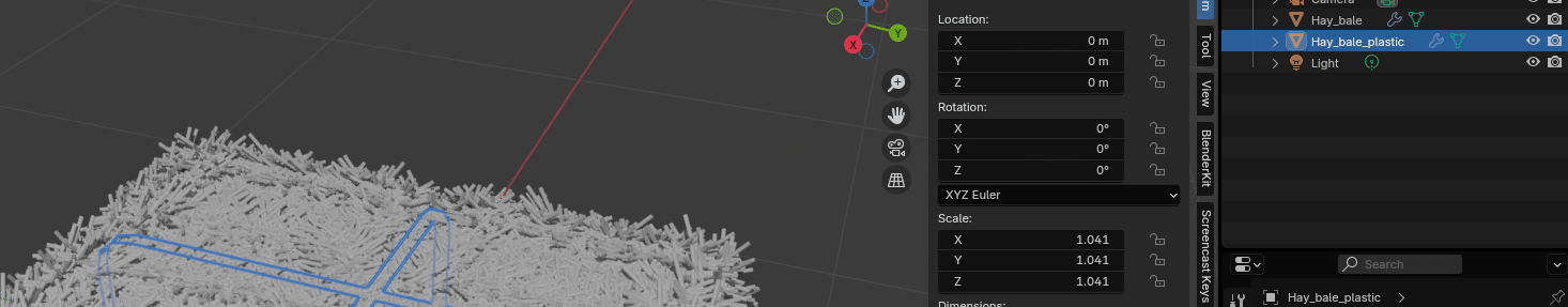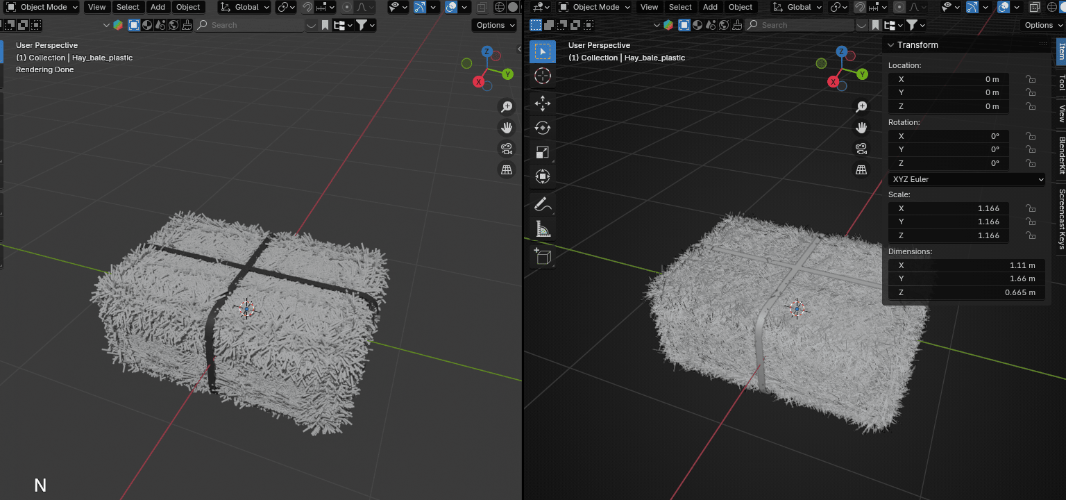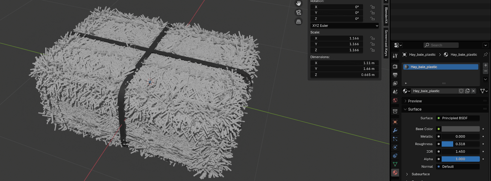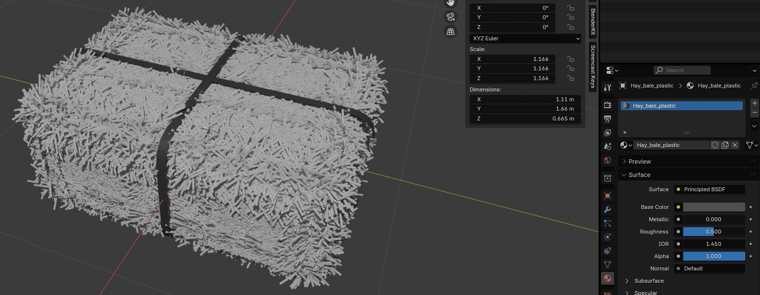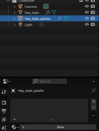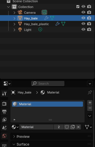 首先,如果还没,把第二个物体重命名为 Hay_bale_plastic(或类似的)。