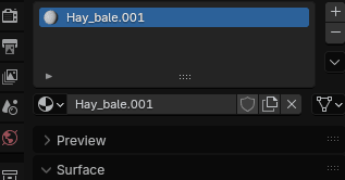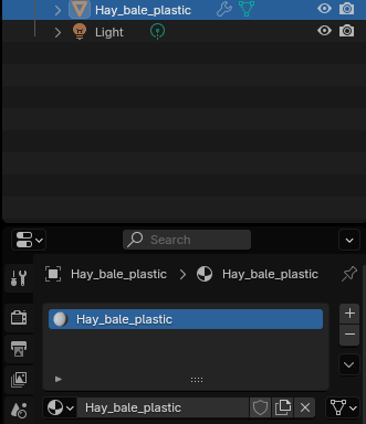 点击"+"添加新材质,重命名为 Hay_bale_plastic。你可以看到数字二消失了,因为这个材质只在一个物体上。