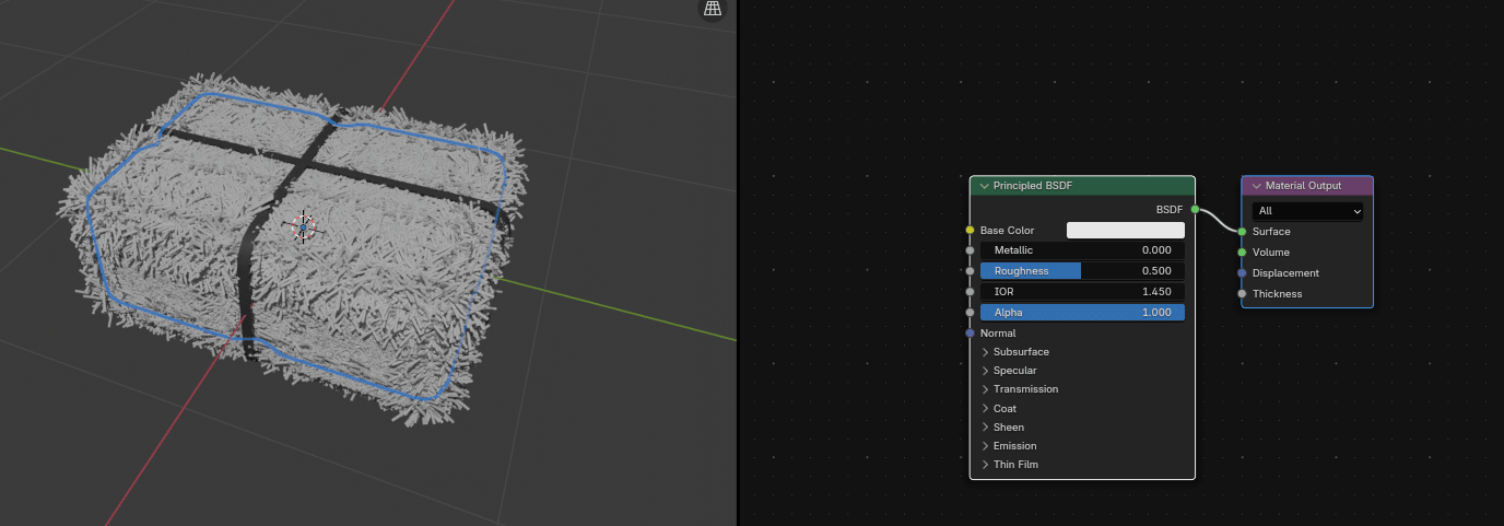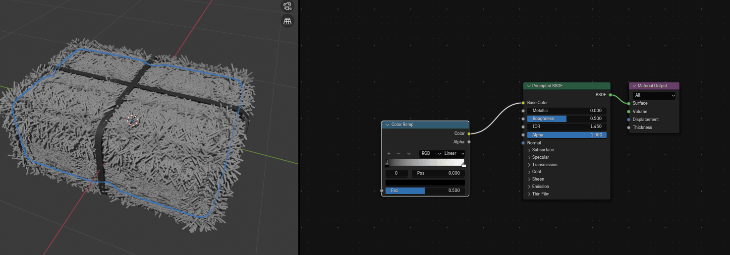 把 Hay_bale_plastic 材质的 Base Color 改成黑色(或你想要的任何颜色)。