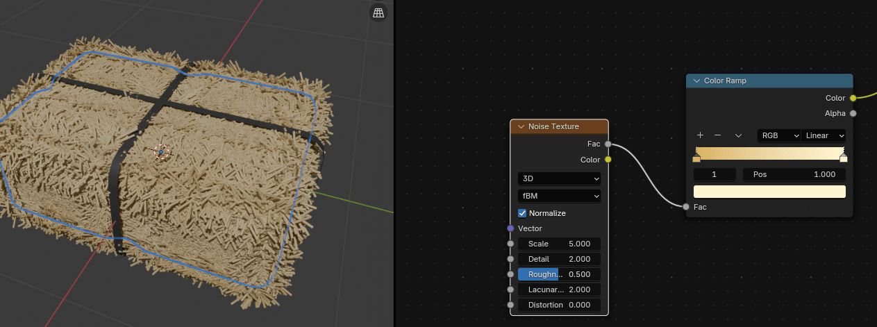 把 Color Ramp 的 Fac 连接到 Noise Texture 的 Fac。