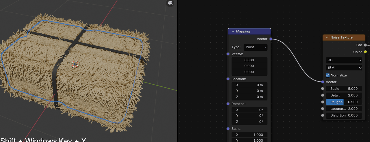 把 Noise Texture 的 Vector 连接到 Mapping 的 Vector。