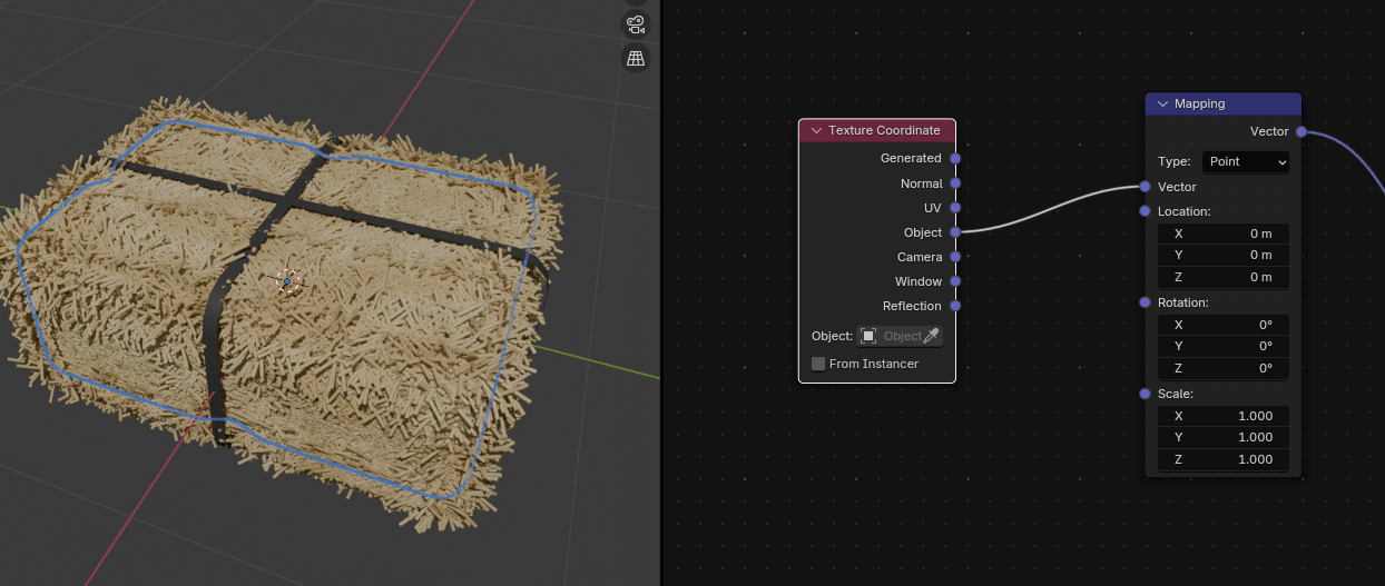 把 Mapping 的 Vector 连接到 Texture Coordinate 的 Object。