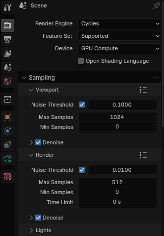 把渲染 Samples 改成 512,因为这种情况不需要 4096采样。
