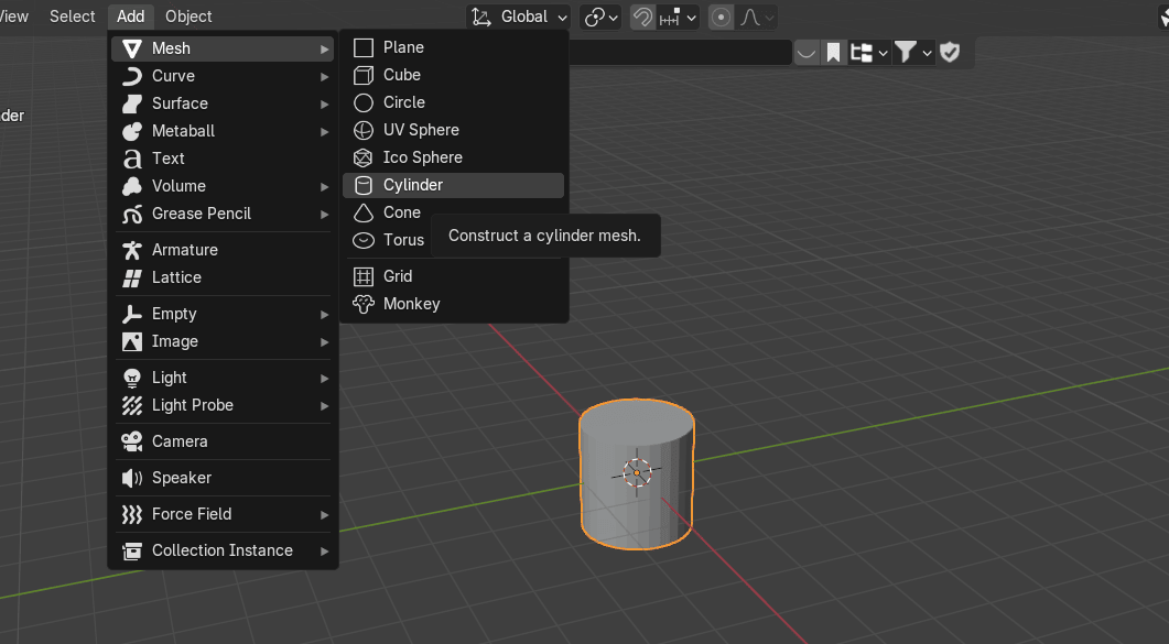 添加 Mesh → Cylinder