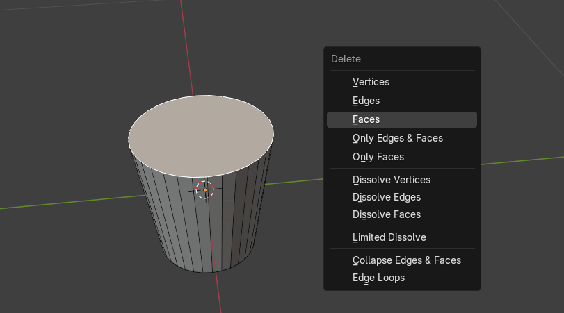 选中顶部的面,然后按"X"删除面。
