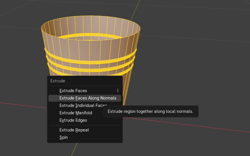 把你之前选中的所有面沿法线往外挤出。