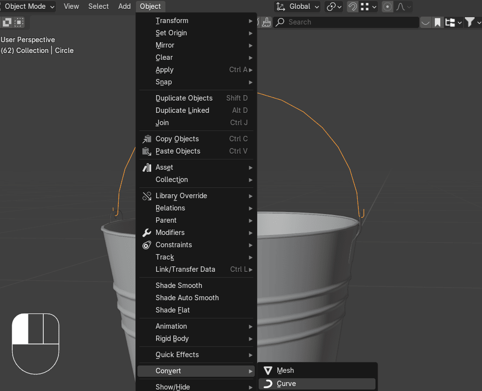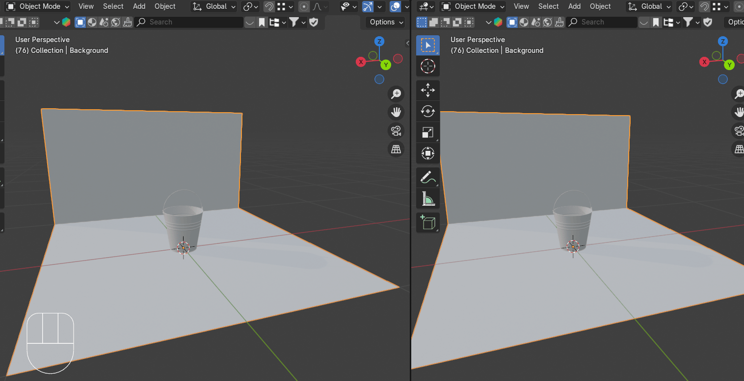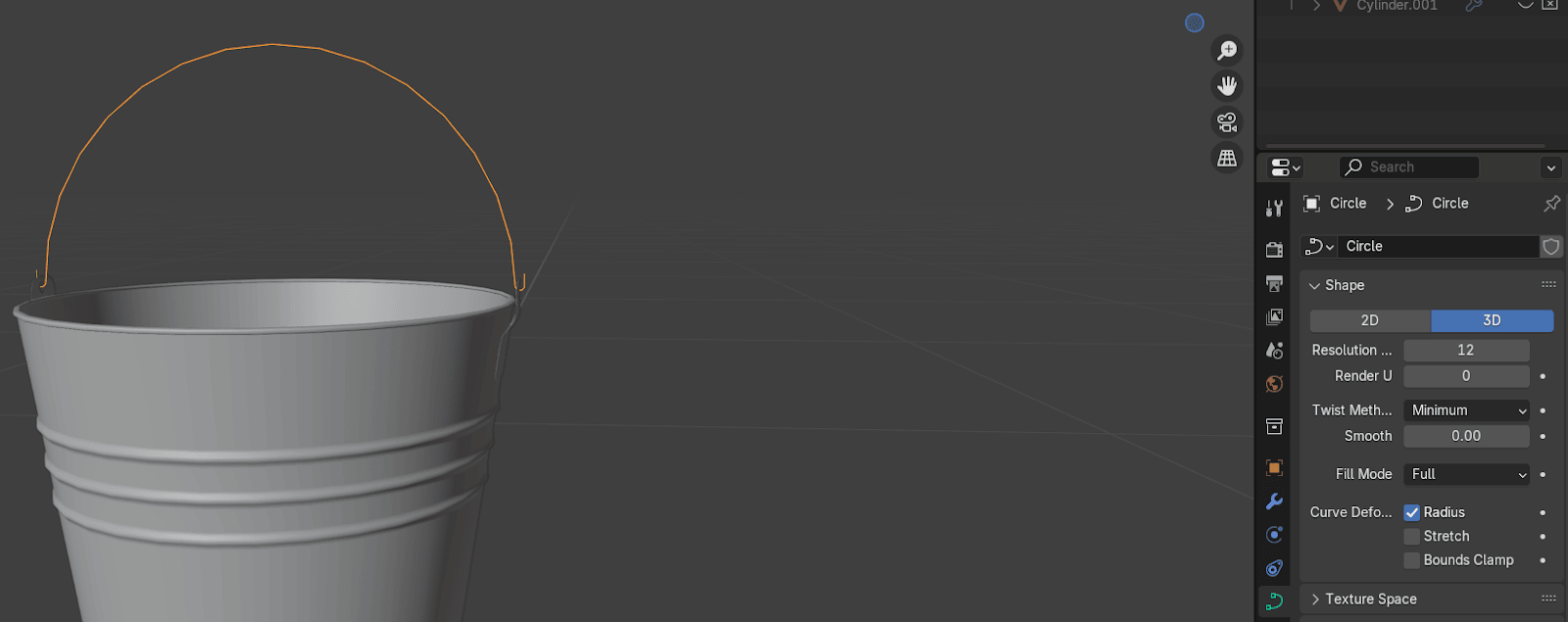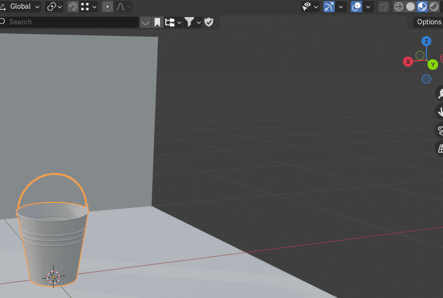 切换到物体模式,这样你就能看到你的水桶现在是什么样子。