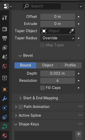 进入bevel - depth,把深度改成0.002米(或者任何你喜欢的数值)。