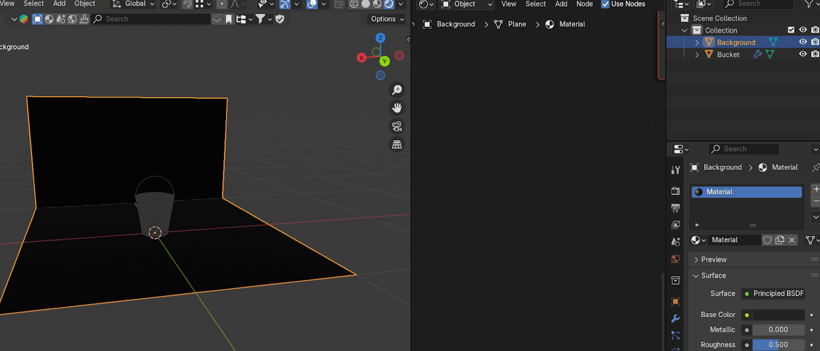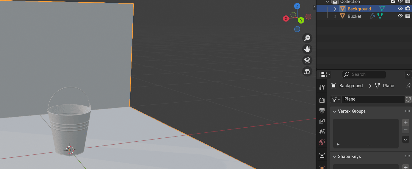 把Cylinder重命名为Bucket,把plane重命名为background(或者任何其他名字)。
