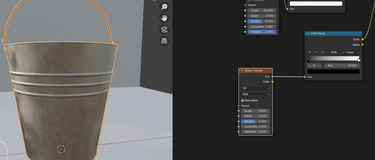 把Color Ramp的Fac连接到Noise Texture的Fac。