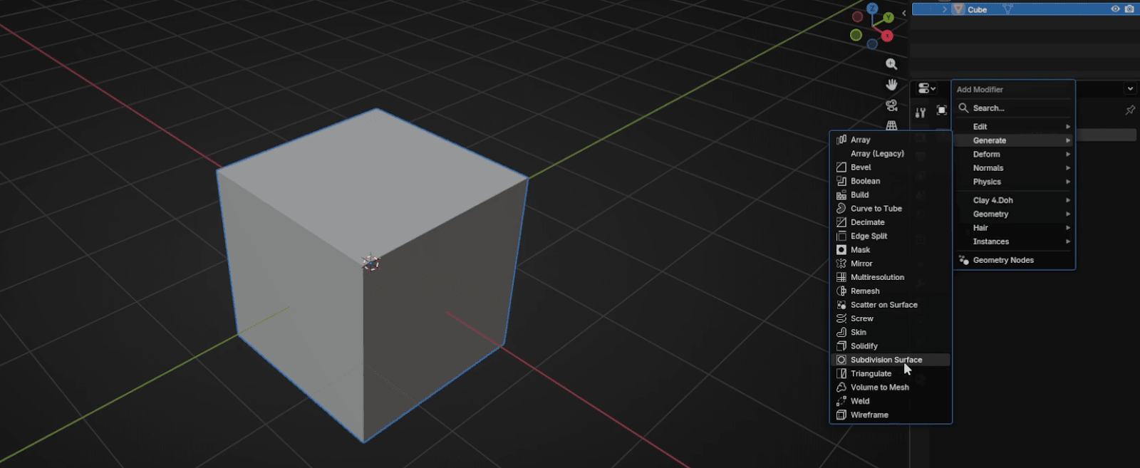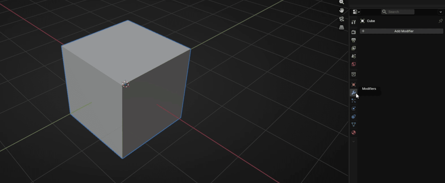 用鼠标左键(LMB)选中立方体,然后进入修改器面板。