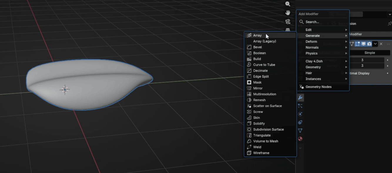 进入 modifier → Add Modifier → Array(不要选 Array Legacy,那个是旧版的)。