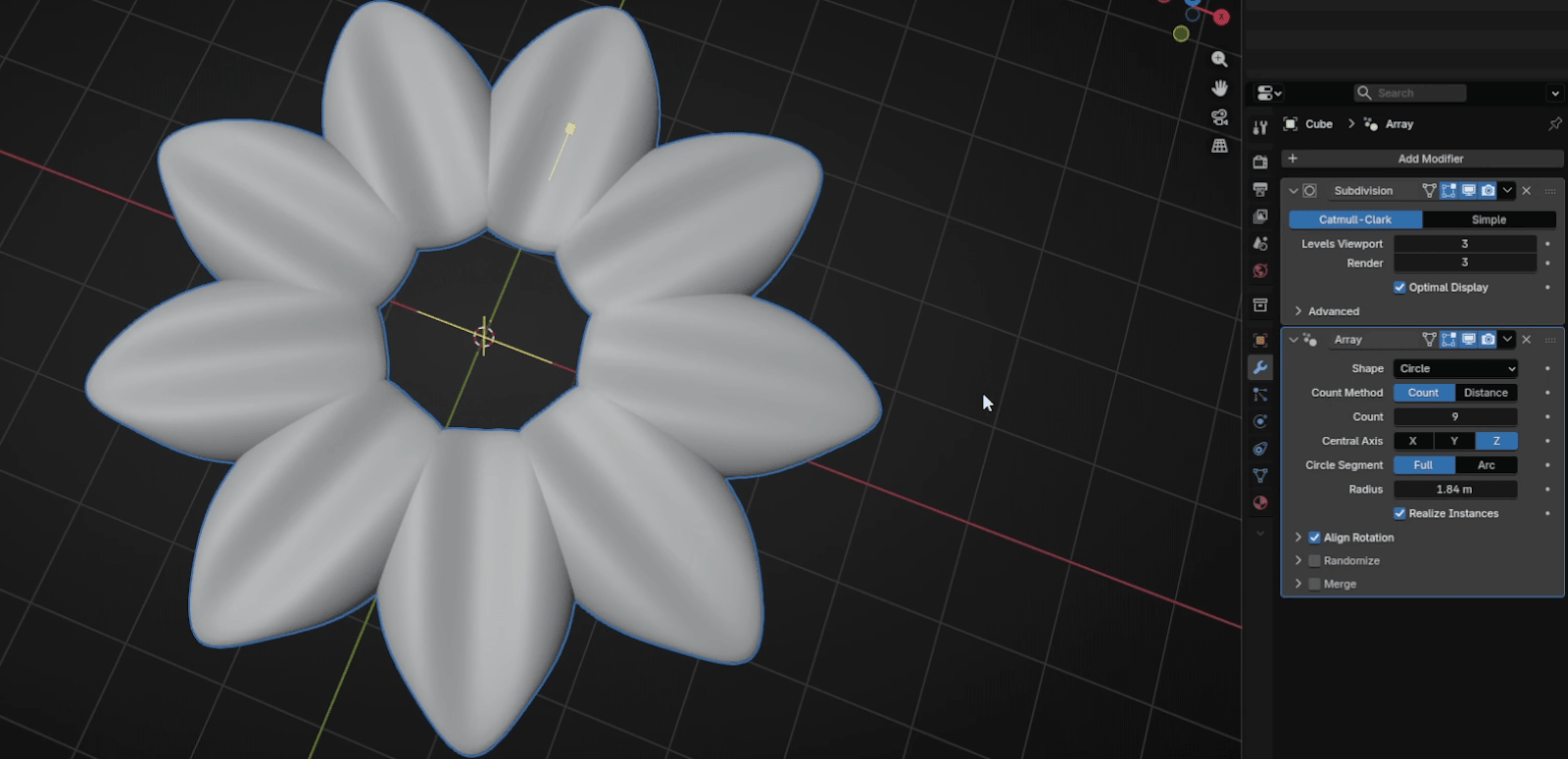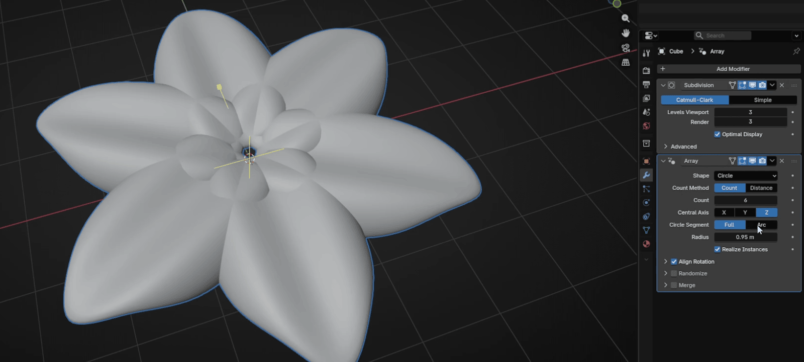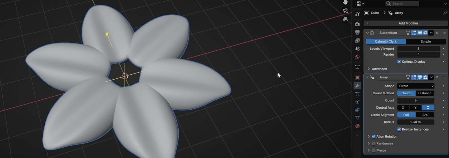 第 30b 章:Blender 5.0 新功能:圆形阵列 - 制作一朵花