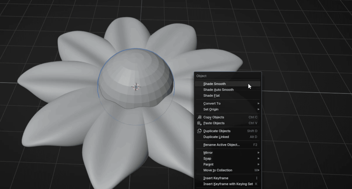 用 "S" 缩放到你觉得合适的大小。点击鼠标右键(RMB),选择着色平滑。